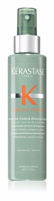Leave-in hårkur Kérastase Genesis Homme Spray de Force Épaississant giver dit hår alt, hvad det netop har brug for efter hårvask. Egenskaber: giver håret fugt og næring forbedrer kvaliteten af hårets struktur gør håret smukt skinnende og vitalt produkt er specielt udviklet til mænd Brugsvejledning: Tilfør frotteret hår. Skyl ikke.