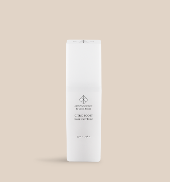 Tilmeld dig vores nyhedsbrev nederst på siden og vi takker med rabatkode: KLUB10, som giver dig 10% på dette skønne produkt. Amazing Space Citric Boost Tonic er en kølig & forfriskende tonic af ekstrakt fra appelsintræet. Sprayes på huden eller bruges på vat som klassisk skintonic efter afrensning. Særlig dulmende til irriteret & rødmende hud. Har en bakteriehæmmende, affedtende & poresammentrækkende effekt ved kombineret og uren hud. Også god som forfriskende & fugtighedsgivende spray når som helst dagen igennem – på kontoret, i bilen, under sport eller på flyet. Kan også bruges oven på makeup for at fiksere makeuppen og give den et fugtmættet look. Anvendelse: Sprayes direkte på det nyrensede ansigt i en afstand på ca 15 cm. fra ansigtet. Kan også sprayes på en vatrondel, hvis du godt kan lide at “tørre” ansigtet af med tonic efter rens.