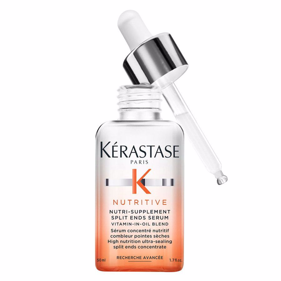 Nutri-Supplement Split Ends Serum fra Kérastase er et ultraforseglende serum til spaltede spidser, som har behov for næring. Denne behandling til spaltede spidser indeholder lipider, der modvirker tørhed og forsegler spidserne, så de tørre spidser bekæmpes